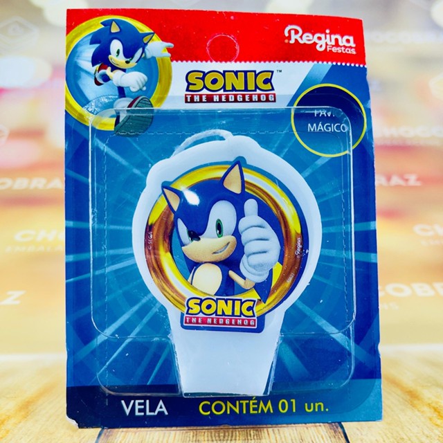 VELA PLANA FESTA SONIC PRODUTO LICENCIADO IDEAL PARA ANIVERSARIOS DE FESTAS TEMATICAS MARCA : REGINA CHOCOBRAZ EMBALAGENS ENVIO IMEDIATO EM ATÉ 24 H