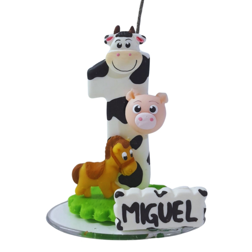 Vela Aniversário Personalizada Topo de Bolo Fazendinha Animais