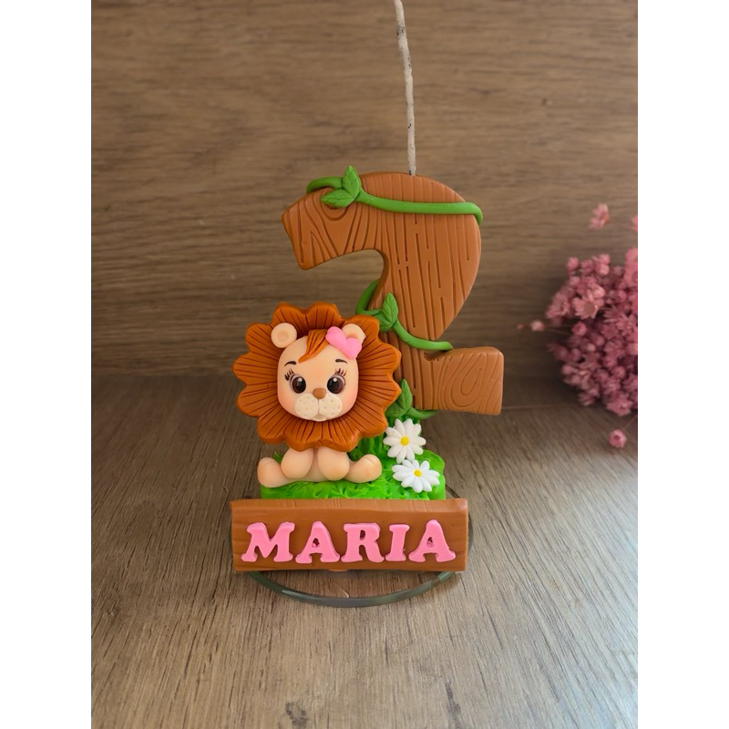 Vela aniversário safari leão/ vela em biscuit leaozinho