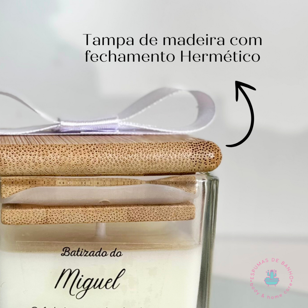 Vela Aromática Lembrancinha Casamento ou Batizado – Tampa de Bambu Personalizada – Mini Vela Luxo