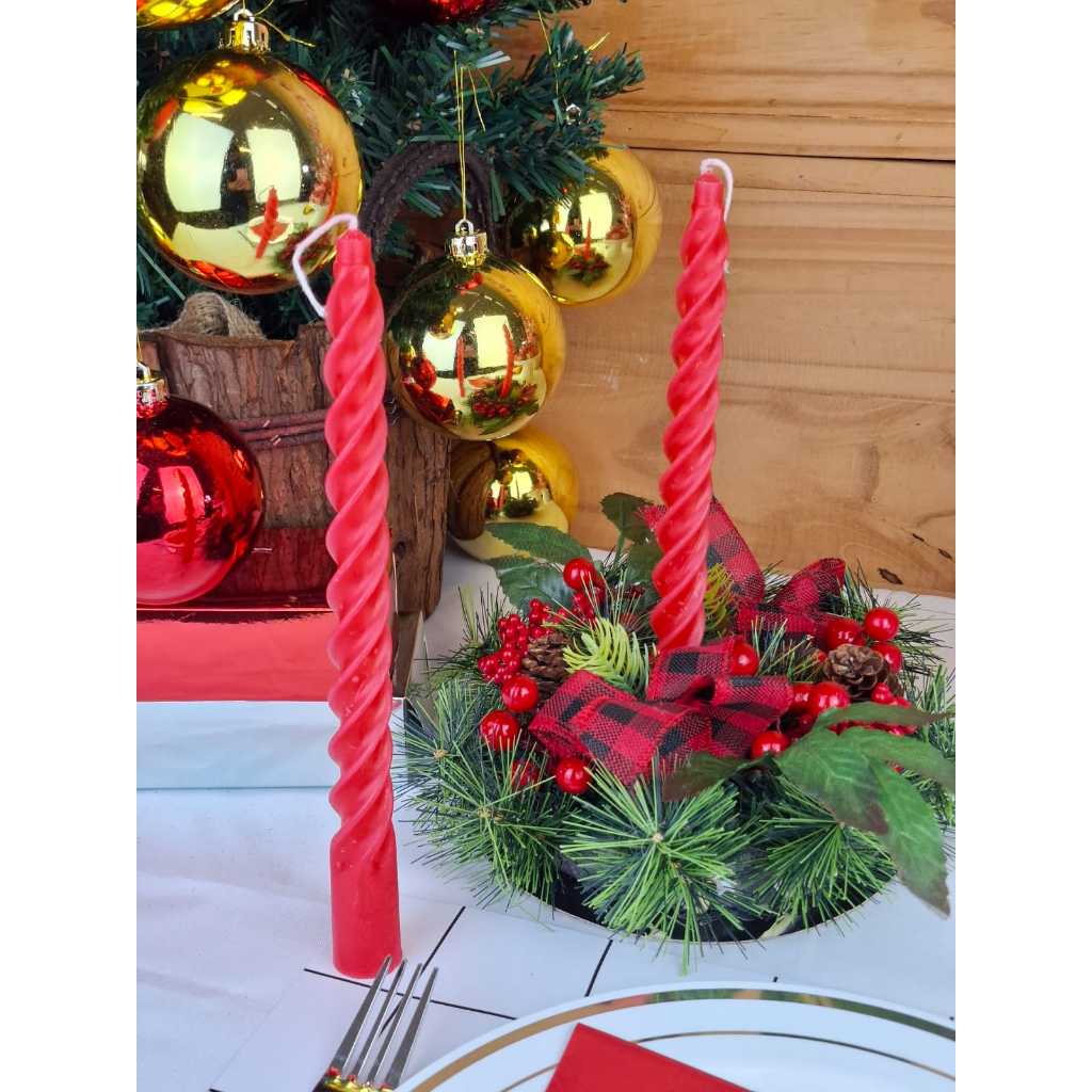 Vela Castiçal Torcida Vermelho 45g Ceia de Natal - 2Unidades