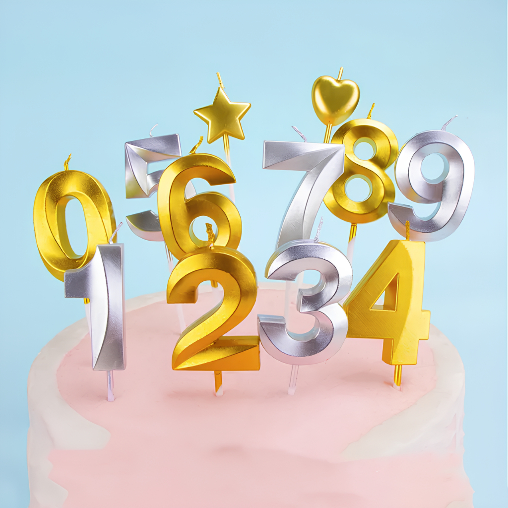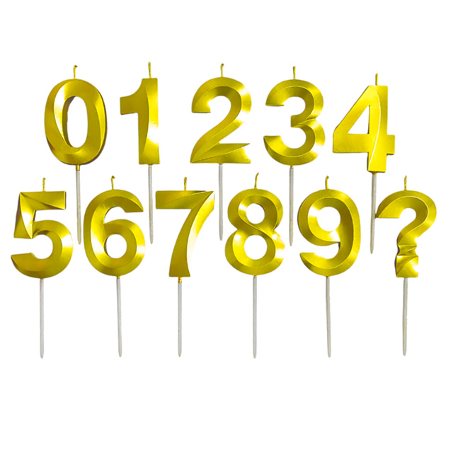 Vela De Aniversário 3D Com Palito N° 0 a 9 Ponto De Interrogação Design Perolado Dourado E Prata