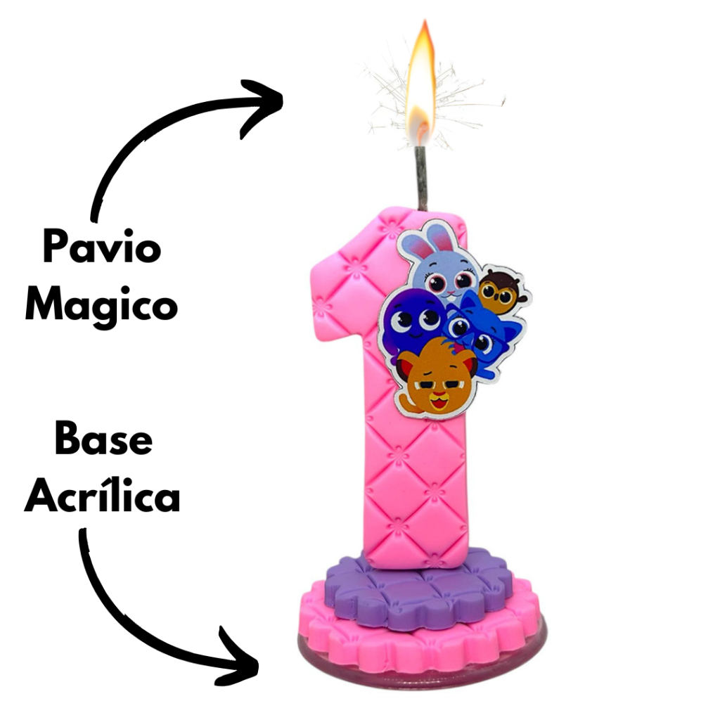 Vela Personalizada - Topo de Bolo Aniversario - BISCUIT Base Acrílica para evitar o contato direto da peça com a cobertura tornando super higiênico para ser usado diretamente sobre o Bolo Personagem Bolofofos Tamanho 6cm x 6cm x 9cm aprox. Todas nossas velas e topos estão disponíveis a pronta entrega para envio imediato após finalização do pedido - 100% Feito a Mão Vela de Numeração de 1 a 9 anos