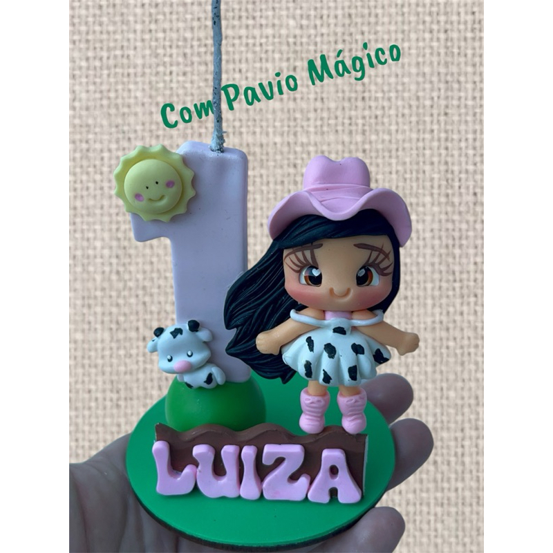 OBS: APÓS CONCLUIR A COMPRA FAVOR ENVIAR O NOME POR MENSAGEM PARA QUE HAJA A PERSONALIZAÇÃO. PEDIDOS QUE NÃO FOR INFORMADO O NOME PARA PERSONALIZAR SERÃO ENVIADOS SEM O NOME. O PRAZO PARA O ENVIO DO NOME É DE ATÉ 24hs APÓS A COMPRA Vela de Aniversário personalizada em Biscuit com o tema Fazendinha Rosa A Base mede 8cm de largura Aprox 10cm de altura Com Pavio mágico Base de MDF revestida com EVA Feita com produtos de qualidade Pode haver leves alterações nas cores Feita em biscuit