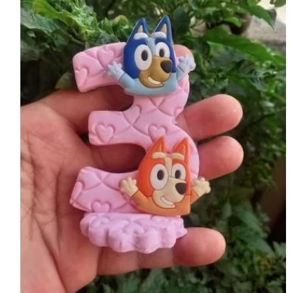 vela de aniversário feita em biscuit tema bluey e bingo