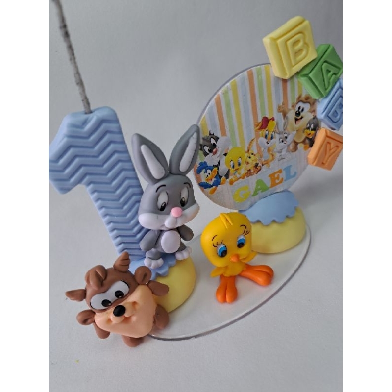 Vela de Aniversário Looney Tunes PRONTA ENTREGA DEIXAR NOME E IDADE PELO CHAT OU NA OBSERVAÇÃO Rosa ou Azul Fazemos todas as idades Feito em biscuit Personalizada com nome