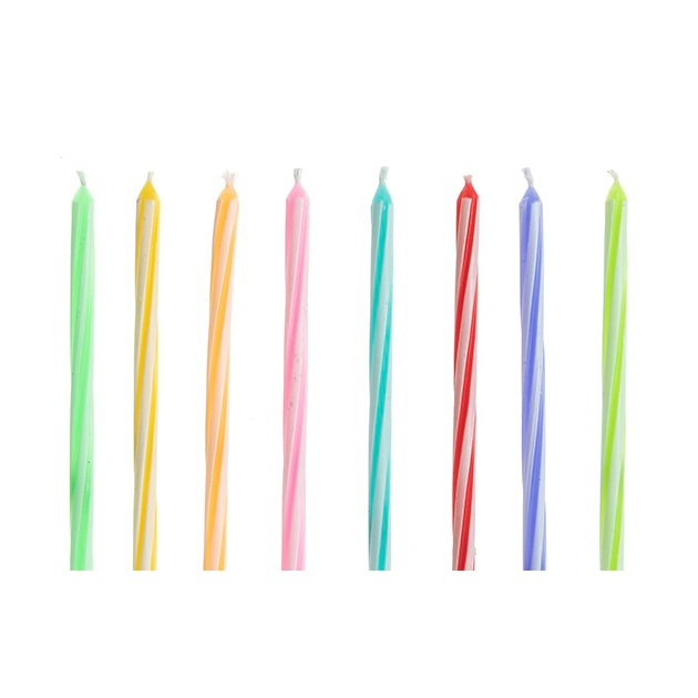 Vela de Aniversario Palito Torcida Espiral Colorida Listrada 15 cm 8 Unidades Silver Festas