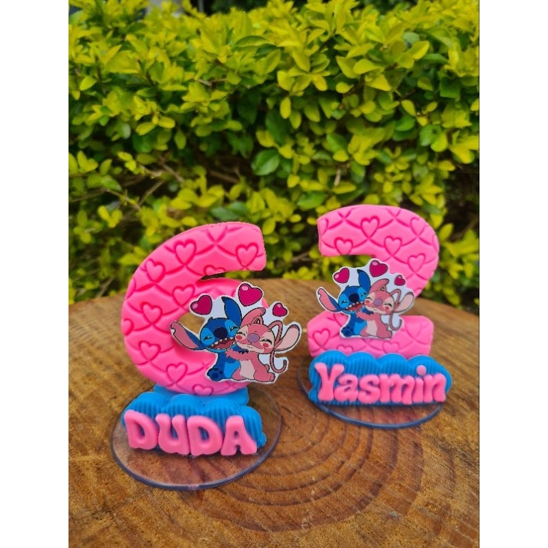 vela de aniversário Stitch e angel, personalizada, biscuit, topo de bolo com nome e pavio