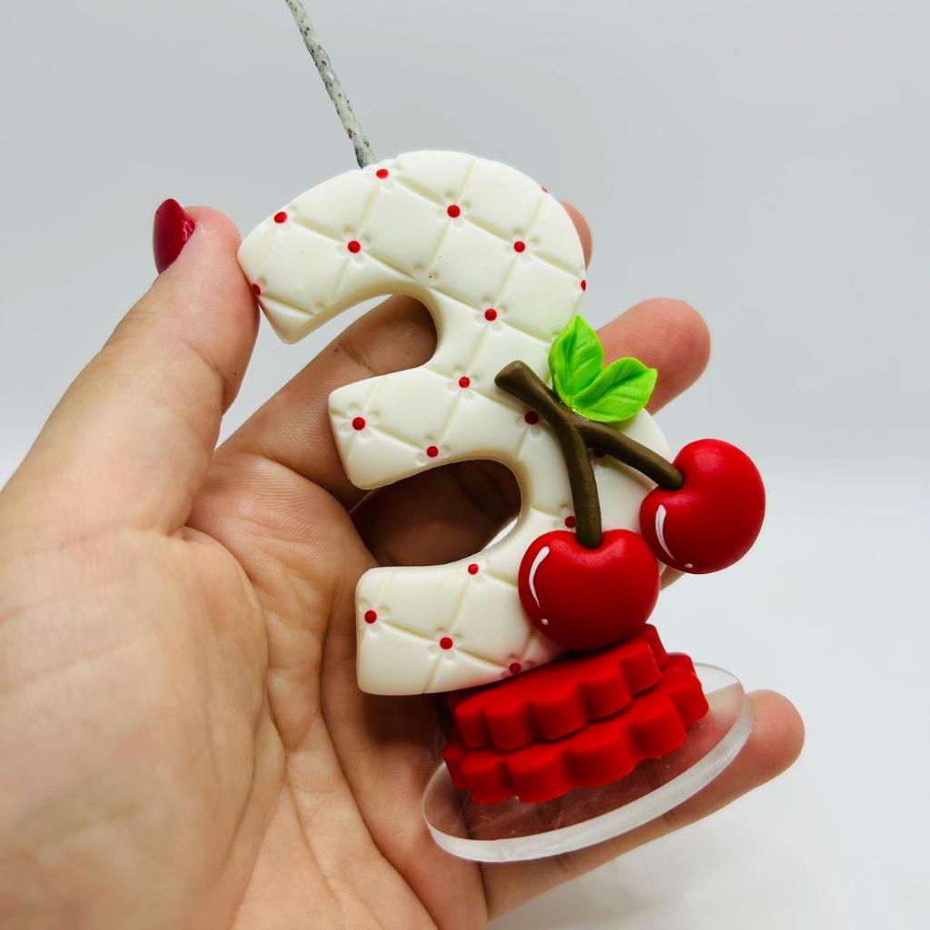 Vela De Aniversário Tema Cereja / Cerejinha com Pavio Mágico e Base Acrílica ENVIO EM 4 DIAS