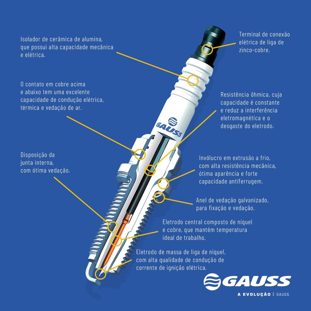 Vela de Ignição VW Gol Saveiro Polo Fox Voyage Golf Parati Marca: Gauss; Código da Peça: GV7R02; Códigos Referência; - BOSCH: F000 KE0 P30 / FR5DE2 / SP30 / F5DPPR302+ / SP33 / F000 KE0 P33; - NGK: BKR7ES / BKR7ES-D; Especificações: Características: - Quantidade de Eletrodo Terra: 1; - Combustível: Gasolina / Etanol; Aplicação Veiculos: - VOLKSWAGEN: Fox Plus Total Flex 1.6 (2008-2009) / Fox Rock in Rio TotalFlex II 1.6 (2008-2014) / Gol Total Flex 1.0 (2005-2012) / Gol Rallye Total Flex 1.6 (2005-2008) / Fox Plus Total Flex 1.6 (2008-2014) / Gol Seleção Total Flex 1.0 (2005-2012) / Gol City Total Flex 1.6 (2005-2006) / Gol City Total Flex 1.0 (2005-2005) / Gol Total Flex 1.6 (2005-2012) / Gol Copa Total Flex 1.0 (2005-2010) / Golf Total Flex 1.6 (2008-2013) / Gol Power Total Flex 1.8 (2005-2008) / Gol City Total Flex 1.6 (2005-2008) / Saveiro City Total Flex 1.6 (2006-2009) / Fox Plus Total Flex 1.0 (2005-2008) / Polo Total Flex 1.6 (2008-2014) / CrossFox CrossFox Total Flex 1.6 (2008-2009) / Gol Ecomotion 1.0 (2005-2014) / Fox Route Total Flex 1.6 (2008-2009) / Voyage Total Flex 1.0 (2008-2015) / SpaceFox Plus Total Flex 1.6 (2008-2010) / Parati Plus Total Flex 1.6 (2006-2012) / Gol Power Total Flex 1.8 (2005-2005) / SpaceFox Total Flex 1.6 (2008-2014) / Gol Seleção 1.0 (2005-2014) / Gol Power Total Flex 1.6 (2005-2012) / Gol Power Total Flex 1.6 (2005-2013) / Fox City Total Flex 1.0 (2005-2008) / Polo Sedan Comfortline Total Flex 1.6 (2008-2014) / Gol Rallye Total Flex 1.6 (2005-2012) / Fox Route Total Flex 1.0 (2005-2008) / Gol City Total Flex 1.6 (2005-2012) / Gol Rallye Total Flex 1.8 (2005-2005) / Gol Rock in Rio Total Flex 1.0 (2005-2012) / Polo Sedan Total Flex 1.6 (2008-2014) / Gol Power Total Flex 1.6 (2005-2008) / Fox Sportline Total Flex 1.0 (2005-2008) / Polo Sportline Total Flex 1.6 (2008-2014) / Gol Power Total Flex 1.6 (2005-2006) / Gol Copa Total Flex 1.6 (2005-2006) / Gol City Total Flex 1.0 (2005-2010) / Gol Copa Total Flex 1.8 (2005-2008) / Golf Sportline Total Flex 1.6 (2008-2014) / Gol Patrulheiro Total Flex 1.8 (2005-2008) / Gol Plus Total Flex 1.0 (2005-2010) / Gol Patrulheiro Total Flex 1.6 (2005-2012) / Fox Novo Total Flex 1.6 (2008-2014) / Gol Total Flex 1.6 (2005-2012) / Gol Plus Total Flex 1.0 (2005-2005) / Gol Patrulheiro Total Flex 1.6 (2005-2006); Garantia: 6 meses Item incluso: - 1 Velas de Ignição; ------------------------ - A AMPEC AUTOPEÇAS não se responsabiliza pelo mau uso ou instalação indevida do produto, sempre recomendamos que a instalação seja feita por um profissional especializado. - O produto é novo ? Sim, trabalhamos somente com produtos novos. -Tem disponibilidade do produto ? Temos disponibilidade de todos nossos produtos enquanto durarem os estoques. -O produto vem com nota fiscal ? Sim, todos nossos produtos acompanham nota fiscal. - Imagem ilustrativa utilizada para identificação e demonstração de produto. - As Marcas e Modelos citadas no anúncio, pertencem aos seus respectivos fabricantes, somente mencionadas como referências para o uso correto do produto, conforme artigo 31 da Lei: 8078 de 11.09.1990 * Não temos qualquer vínculo com estas empresas. Infelizmente não emitimos NF para revenda fora do estado do Paraná. Desculpe. Fora do estado atendemos apenas destinado a consumidor final.