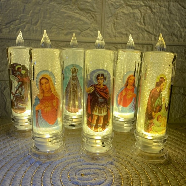 Vela de Led Eletrônica Virtual Chama Viva Vários Santos