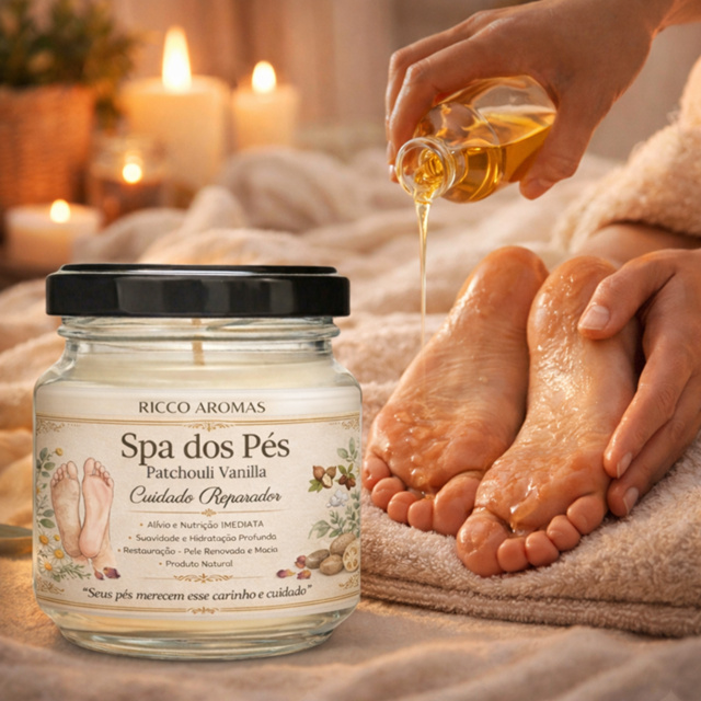Transforme seu ritual de spa dos pés em um momento profundo de relaxamento com a Vela de Spa dos Pés Ricco Aromas ✨ Produzida com cera de coco 100% natural, vegana e hidratante, ela derrete suavemente, transformando-se em um óleo morno ideal para hidratar, massagear e aliviar o cansaço dos pés. Perfeita para quem busca autocuidado, bem-estar e conforto após um dia intenso. 🌱 Características: • Cera vegetal de coco 100% pura e natural • Livre de parafina, toxinas e ingredientes de origem animal • Textura leve, nutritiva e de rápida absorção • Uso seguro como óleo hidratante para pés e pernas • Aroma suave e terapêutico (aromaterapia) • Auxilia no relaxamento e na sensação de pés descansados • Produto artesanal, ecológico e com acabamento premium 🌸 Opções de fragrâncias: Alecrim Baby Bamboo Dreams Capim Limão Cereja com Avelã Chá Branco Flor de Cerejeira Garden Lavanda Francesa Maçã com Canela Madeira Nobre Morango Musgo de Carvalho Neutra Patchouli Vanilla Pimenta Rosa Vanilla Secrets 📦 Tamanho disponível 40g 120g 180g 💆♀️ Ideal para: • Spa dos pés em casa • Profissionais de estética e podologia • Alívio do cansaço diário • Momentos de autocuidado e relaxamento • Presente criativo, sofisticado e sensorial 👉 Adicione ao carrinho e transforme seus pés em um verdadeiro ritual de cuidado com Ricco Aromas. ✨ Modo de Uso – Vela de Spa dos Pés Ricco Aromas 1️⃣ Acenda a vela e aguarde 3 a 5 minutos, até formar uma pequena poça de óleo líquido. 2️⃣ Apague a chama com cuidado. 3️⃣ Teste a temperatura do óleo com a ponta dos dedos. O óleo fica morno e seguro para a pele. 4️⃣ Despeje uma pequena quantidade nas mãos ou diretamente nos pés. 5️⃣ Massageie suavemente pés e pernas, fazendo movimentos circulares, até completa absorção. 6️⃣ Aproveite o momento de relaxamento, hidratação e aromaterapia 🌿 💡 Dicas especiais: • Ideal para usar após o banho ou escalda-pés • Não necessita enxágue • Pode ser usada diariamente • Uso externo ⚠️ Cuidados: • Manter fora do alcance de crianças e animais • Não deixar a vela acesa sem supervisão • Evitar contato com os olhos • Não aplicar em pele ferida ou irritada