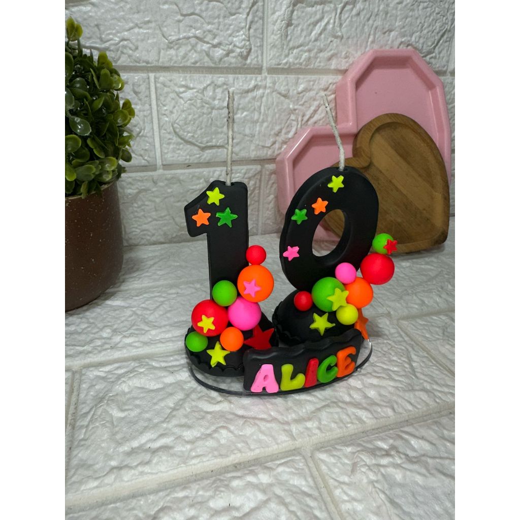 Vela Em Biscuit Neon Numeração Dupla Com Nome