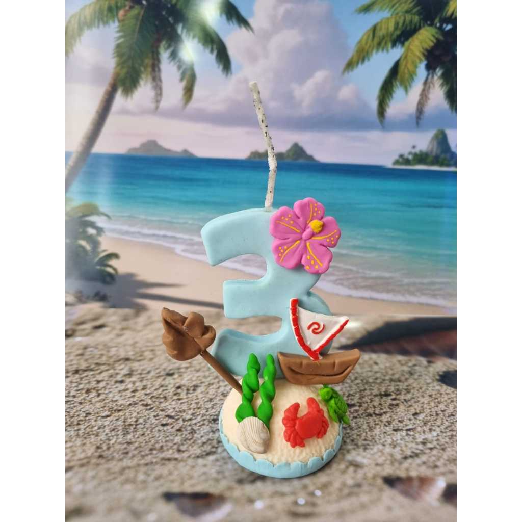 Vela Em Biscuit No Tema Moana Azul - PRONTA ENTREGA-