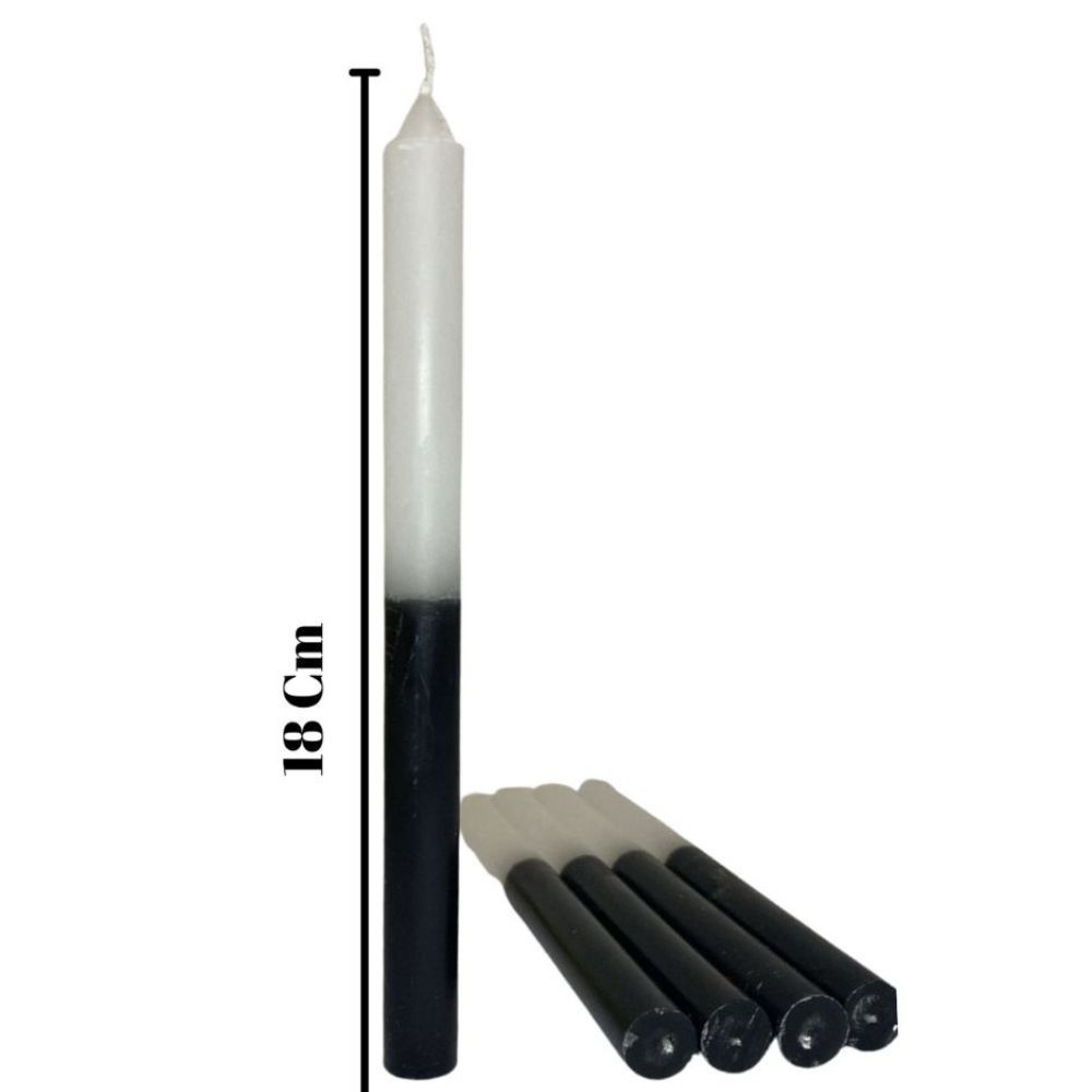 Vela palito bicolor - branca e preta - 18cm meio Kg com 16 unidades