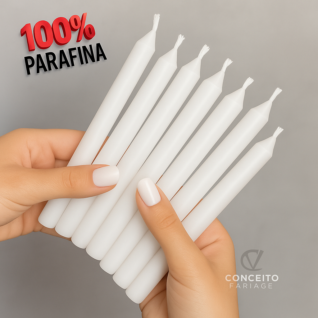 BEM VINDO AO TIGA SHOP ****AVISO IMPORTANTE**** Antes de realizar a compra, certifique-se que as medidas e peso desse produto lhe atende em suas necessidades. Medidas Unitário: - Altura: 18 cm - Largura: 1,5 cm - Peso: 29 gr Duração de Queima: - 6 Horas **NESTE KIT NÃO CONTÉM BICOLORES/COLORIDAS** Aguardamos seu pedido para podemos em seguida despacha-lo!