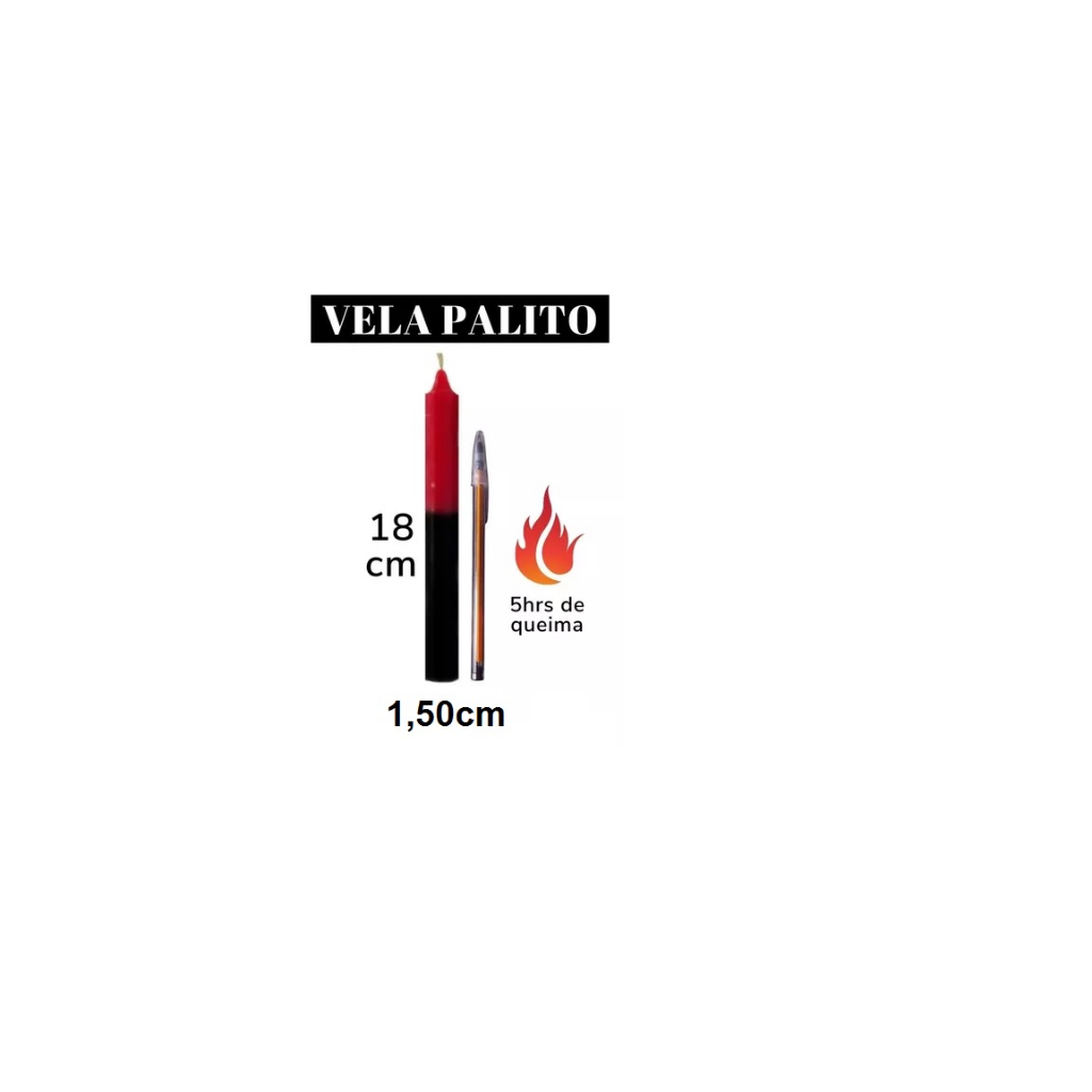 Tenha uma experiência espiritual única com nossas velas palito religiosas. Feitas com cera de alta qualidade, essas velas produzem uma chama brilhante e duradoura, perfeita para orações, meditação ou qualquer outro momento de conexão com sua fé. Com uma variedade de cores disponíveis, nossas velas palito religiosas são perfeitas para combinar com a decoração do seu espaço de oração ou altar. Além disso, nossas velas são cuidadosamente embaladas para garantir que cheguem até você em perfeitas condições. Se você está procurando por um produto que ajude a trazer paz e serenidade para sua vida espiritual, nossas velas palito religiosas são a escolha perfeita. Experimente agora e sinta a diferença em sua conexão com a sua fé. 30 Vela palito Vermelha e Preto Bicolor de ótima qualidade. Produzida com parafina pura. Duração: 18cm: Aproximadamente 5 horas 15cm: Aproximadamente 3 horas Sendo uma estimativa, podendo variar para mais ou para menos dependendo de diversos fatores, como o lote da matéria-prima, o local e o recipiente em que for acesa. Umidade, correntes de ar, temperatura do local e movimentos na vela podem afetar sua duração. Diâmetro: 1,5cm BENEFÍCIOS: Possui boa qualidade da chama; Não faz fumaça; Não exala cheiro; Informações Quando se trabalha com velas, para que se possa direcionar os desejos, utiliza-se o cromatismo, isto é, utiliza a vela da cor respectiva a área relacionada ao desejo. Vela Branca: tranquilidade, paz de espírito, pureza, harmonia, iluminação, sinceridade. Excelente para ser usada em crises, em relacionamentos e família, para trazer segurança e estabilidade. Vela Preta: trabalha o desenvolvimento da sabedoria, da magia, da proteção e do banimento de energias pesadas, gera velocidade de ação. Vela Vermelha: ajuda nas causas urgentes, nas decisões complicadas e também para trazer ânimo, ação, força, dinamismo, trabalhar aspectos de prazer e paixão.