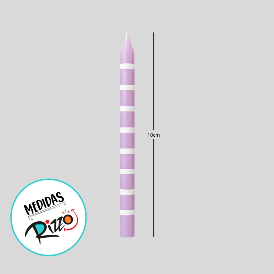 Vela Palito Colorida Listras Brancas - 10cm - 8 unidades - Rizzo