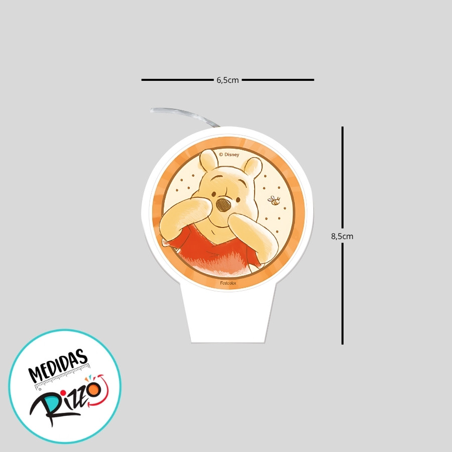 Vela Plana Adesivada - Ursinho Pooh - 6,5x8,5cm - 1 unidade - Festcolor - Rizzo