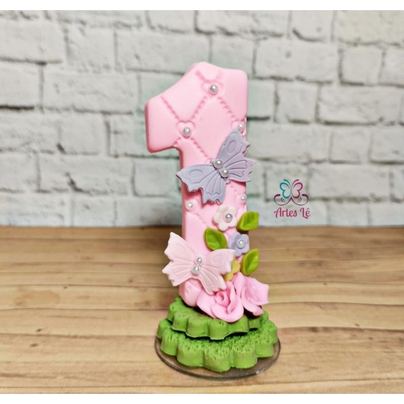 Vela Temática Jardim Encantado, borboletas, personalizada em biscuit
