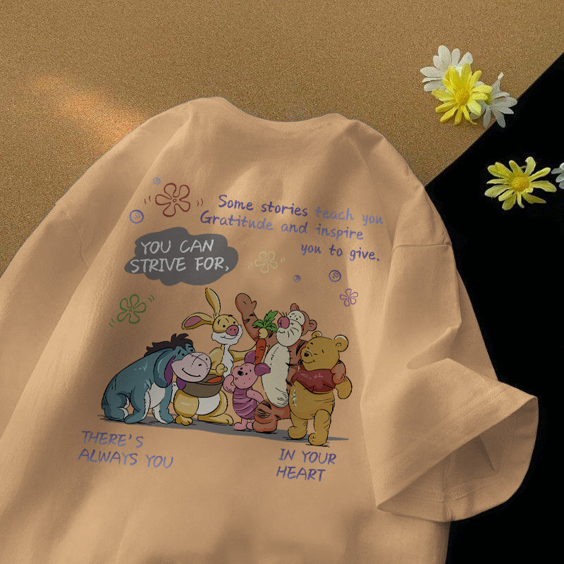 Velsiss Camiseta Feminina Winnie The Pooh De Manga Curta , Solta, Casual, Estampada, Gola Redonda