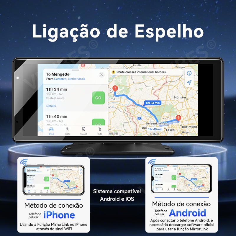 VENBES 9 Polegada Jogador De Carro Portátil Sem Fio Carplay Android Auto MirrorLink Touchscreen