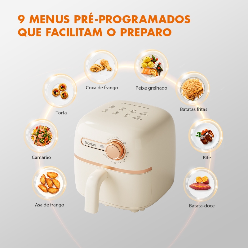 [Venda em combo]Gaabor Combo com 2 Fritadeiras Elétricas 1,4L Antiaderente Timer Simples 900W AF20M-YE01A