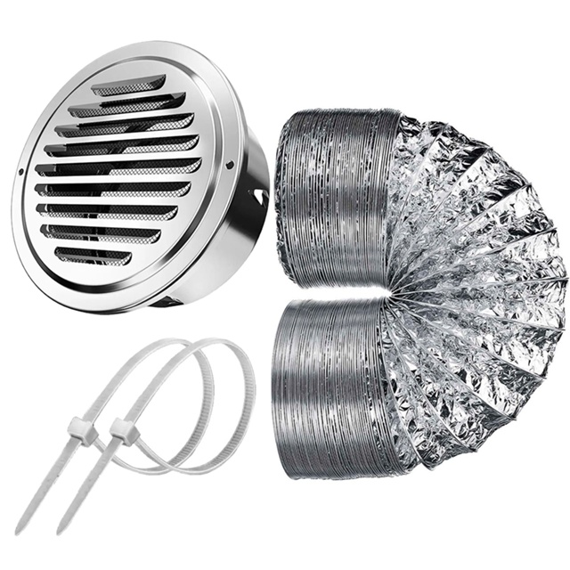 Veneziana Grade 120mm em Aço Inox com Tubo Duto Para Saída Ar Exaustor Depurador Trailer Motor Home