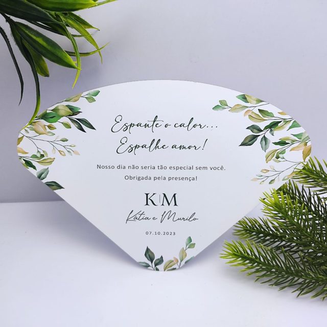 Ventarola Leque de Papel Personalizado com nomes e data para cerimônias e festas. * Tempo médio de PRODUÇÃO de 09 DIAS ÚTEIS após a confirmação do pagamento * * Enviar dados no campo de mensagens ou no CHAT DO VENDEDOR * * NÃO ENVIAMOS PRÉVIAS PARA APROVAÇÃO PARA AGILIZAR A PRODUÇÃO * Casamento ao ar livre no verão costumam ser bem quentes para os convidados! Para os socorrer, disponibilize esse mimo na cerimônia, os leques podem ser entregues na chegada do convidado, por sua assessoria ou então deixadas nos bancos e cadeiras. PERGUNTAS FREQUENTES -QUAIS SÃO OS VALORES? Caso esteja em seu celular, clique em "COMPRE AGORA" no anúncio e uma aba com quantidades e modelos aparece para você. Para ver os valores é necessário clicar em um MODELO e uma QUANTIDADE, desta forma o valor aparecerá na tela para você. -COMO FAÇO PARA PERSONALIZAR? *******Não fazemos artes********* Após a compra, informar o modelo do anúncio que deseja, sendo que temos outras cores e artes disponíveis em nosso catálogo. Fornecer por escrito os NOMES dos noivos, a DATA do casamento e a FRASE que deseja para personalização. Lembrando que a frase não pode ser muito grande, é preciso que seja de um tamanho similar a frase original do modelo escolhido. Adicionamos também o seu LOGO ou BRASÃO pessoal, que deve ser encaminhado através do chat em arquivo de boa qualidade . -POSSO ENVIAR A MINHA ARTE PRONTA? Sim! Pode nos enviar a sua arte pronta, desde que tenha conversado anteriormente conosco através do chat para acertarmos as medidas e os detalhes do design de acordo com nosso padrão de corte. A arte precisa ser enviada pronta somente para impressão. Não mexemos nas artes fornecidas pelos clientes. -É POSSÍVEL ADIANTAR A PRODUÇÃO? Caso seu evento esteja próximo e precise dos itens com urgência,consultar antes de efetuar a compra se há disponibilidade de adiantar o pedido, pois nem sempre temos vaga para poder adiantar a produção. -COMO ESCOLHO A QUANTIDADE E MODELO? Ao clicar em "Compre agora" no anúncio, uma aba com quantidades, modelos e valores aparece para você. Caso a opção que deseja não esteja dísponivel no anúncio, nos envie uma mensagem no chat do vendedor para esclarecer a dúvida e adicionamos a opção que deseja ao anúncio. -QUAIS SÃO OS PRAZOS DE PRODUÇÃO E ENTREGA? O tempo de produção no momento é de até 09 DIAS ÚTEIS, além do tempo de entrega que o cliente precisa consultar com a Shopee ao simular uma compra. ESPECIFICAÇÕES: Medidas da Ventarola/Leque: 19,7 cm x 13,7 cm Papel utilizado: Feito em Papel Offset 230g (FOSCO) Impressão: Feito a jato de tinta. Corte: Corte preciso feito a laser. Origem: Produto personalizado feito no Brasil. OBSERVAÇÕES: * Por favor seja objetivo e específico com os dados da personalização no chat, pois NÃO ENVIAMOS PRÉVIAS PARA APROVAÇÃO. * Mantenha os itens dentro da caixa de envio e fora do contato direto com a luz, desta forma o papel não desbotará e seu produto ficará intacto ao longo de vários meses. * Itens personalizados não possuem devolução, por favor se atente aos prazos da plataforma e do vendedor.