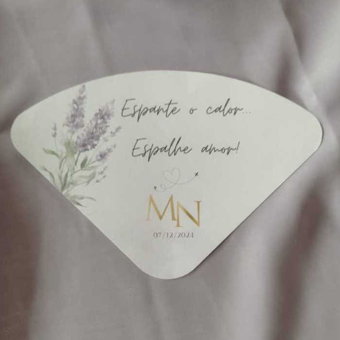 Garanta conforto e charme em seus eventos com nossas ventarolas personalizadas! Disponíveis em dois modelos, elas são confeccionadas com: Papel Offset 240g com impressão somente frente, ideal para quem busca leveza e praticidade. Papel Offset 240g, proporcionando mais firmeza e elegância, com impressão frente e verso para um acabamento completo. Com tamanho de 18,5 x 12,5 cm, design encantador, ilustrações florais delicadas e personalização exclusiva (iniciais, data e mensagens), essas ventarolas são perfeitas para casamentos, aniversários e outras celebrações especiais. Além de funcionais, adicionam um toque sofisticado ao evento, encantando seus convidados. Transforme o calor em conforto com estilo e sofisticação.