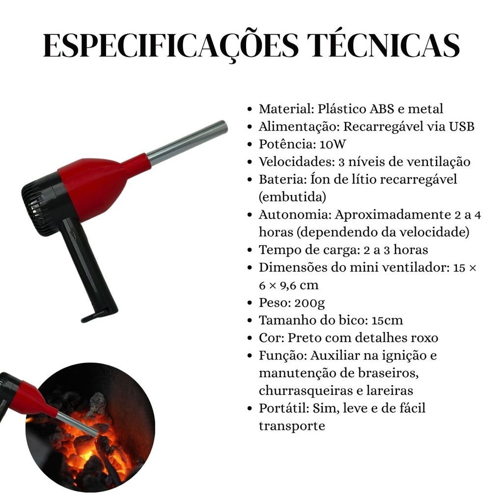 Ventilador Acendedor Para Churrasqueira Carvão Portátil