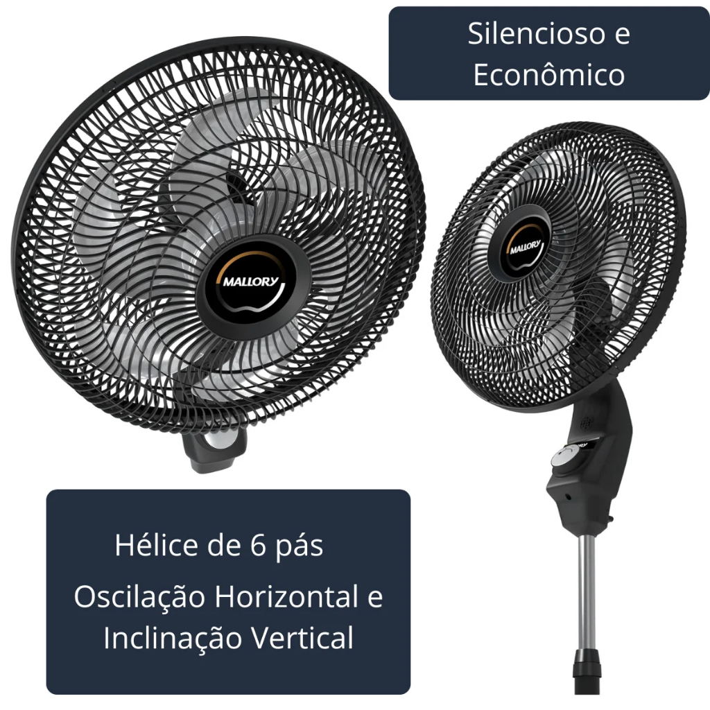 VENTILADOR ECOLO 6 PÁS PR-GR PRETO/GRAFITE - 127V MALLORY ** ESTE MODELO ***NÃO*** ACOMPANHA CONTROLE.. O Ventilador de Coluna Éolo Mallory é a escolha ideal para quem busca eficiência e conforto com máxima economia. Com 126W de potência e hélice de 6 pás, ele proporciona um fluxo de ar poderoso enquanto mantém silêncio absoluto, tornando-o perfeito para qualquer ambiente, seja em casa ou no escritório. Com a grade em sistema especial TS e eficiência energética A, o ventilador oferece um desempenho de alta qualidade nas 3 velocidades, ajudando a reduzir o consumo de energia e garantindo economia a longo prazo. Entre as funcionalidades que aumentam sua praticidade estão o ajuste de altura, a oscilação horizontal, a inclinação vertical e a grade removível para facilitar a limpeza, tornando o ventilador fácil de manter e ajustar conforme as suas necessidades. Com 40 cm de diâmetro, a linha de ventiladores Mallory garante o maior fluxo de ar do mercado na categoria, sem perder em silêncio e desempenho. Escolha o Ventilador de Coluna Éolo Mallory e desfrute de frescura, economia e praticidade em um único produto. Nome da marca: ?Mallory Modelo: ?B94401701 Cor: ?Preto/ Grafite Registro no Inmetro: ?BRA21/01442 Nome do modelo: ?ÈOLO Tipo de ventilador: Coluna Características especiais: ?Altura ajustável, Inclinação ajustável Peças para montagem: ?01 VENTILADOR E 01 MANUAL Tipo de alimentação: Elétrica Voltagem ?110 Volts Consumo de energia kWh/mês: 3,33 Kw/H*/Mês Vazão: 1,00 M³/S Quantidade de pás: 6 Quantidade de velocidades: 3 Tipo do material da grade: Polipropileno (Pp) Grades desmontáveis: Sim Inclui controle remoto: Não Função turbo: Sim Coluna ajustável: Altura Mínima: 1,12 M. Altura Máxima: 1,30 M. Diâmetro da grade: 50Cm Diâmetro da hélice: 40Cm Dimensões do Produto: Comprimento 50 Cm; Largura 33 Cm; Altura 1,30 Metros; Peso 5,9 Kg Dimensões da embalagem ?64 x 51,4 x 19,2 cm; 5,7 Kg Garantia: 12 Meses direto do fabricante *Imagens meramente ilustrativas Bem vindos a Maxx, tudo em um só lugar.