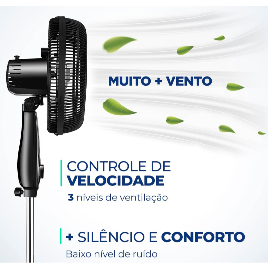 Ventilador de Coluna Mondial 6 pás Turbo 30cm 110v Preto Com 30CM e 3 VELOCIDADES, o Ventilador Turbo Coluna Mondial é vento mais forte. Ele tem baixo nível de ruído, ajuste de altura, sistema oscilante lateral, inclínação vertical regulável, além ser compacto e ter baixo consumo. Sua HÉLICE TEM DESIGN AERODINÂMICO, o que proporciona um vento forte. Como ele faz menos barulho, com qualquer uma das 3 VELOCIDADES, você dorme com ventinho e silêncio garantidos. Para ambientes mais amplos, você pode usar seu sistema oscilante. Já sua inclinação vertical regulável direciona o fluxo de ar para cima ou para baixo. Como a grade frontal é REMOVÍVEL, ele ainda é fácil de montar e desmontar para limpeza. Ele também é fácil de carregar porque tem uma alça para transporte. Já a BASE ANTIDERRAPANTE traz mais segurança. Características: - TURBO VENTO MAIS FORTE - A hélice possui melhor design aerodinâmico, permitindo a maior vazão do ar, o que proporciona um vento forte, tornando o ambiente fresco e arejado. - MAIS SILÊNCIO E CONFORTO - Menos barulho, proporcionando bem-estar para toda família. O ventilador Turbo possui baixo nível de ruído, você pode conversar tranquilamente, assistir TV e manter o ambiente confortável, arejado e sempre ventilado. - CONTROLE DE VELOCIDADE - As 3 velocidades permitem adequar o nível de ventilação a sua necessidade. As velocidades: máxima turbo, média conforto, mínima silencioso, são ideais para dormir com o vento moderado e com silêncio garantido, proporcionando uma noite de sono tranquila. - COLUNA AJUSTÁVEL. Possui regulagem de altura 1,19 a 1,50 metros, permitindo a escolha da altura ideal do vento. - SISTEMA OSCILANTE. Permite ampliar a distribuição de ar pelo ambiente, deixando-o mais agradável e ventilado. - O Ventilador 30cm Turbo Coluna Mondial, foi desenvolvido para USO DOMÉSTICO, sendo melhor para uso residencial. Especifícações: - Marca: Mondial - Cor: Preto/Prata - Voltagem (Tensão): 110V - Potência: 50W - Frequência: 60Hz - Número de velocidades: 3 - Material: Polipropileno - Oscilante: Sim - Quantidade de pás: 6 Pás - Altura: De 1,19 a 1,5M - Tipo de montagem: Montagem no chão - Tipo de controlador: Controle de botão - Tipo de ventilador: Ventilador de coluna (Ajustável) Dimensões do produto: - (CxLxA): 44,5cm x 44,5cm x 1,50cm - Diâmetro: 30cm - Peso do produto: 4,700kg Conteúdo da embalagem: - 1 Ventilador de coluna Mondial - 1 Manual de instruções Garantia do produto: - 12 Meses pelo fabricante.