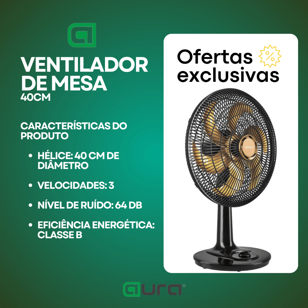 | Ventilador de Mesa Turbo 40cm Oscilante Preto Forte e Silencioso este produto | R$ 139,90 | 26% | 4.3/5 | — |