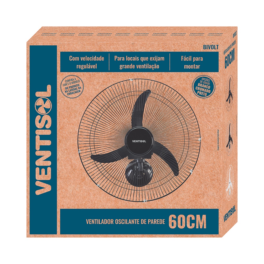 Ventilador de Parede Ventisol Oscilante Premium 3 Velocidades 60cm - Bivolt