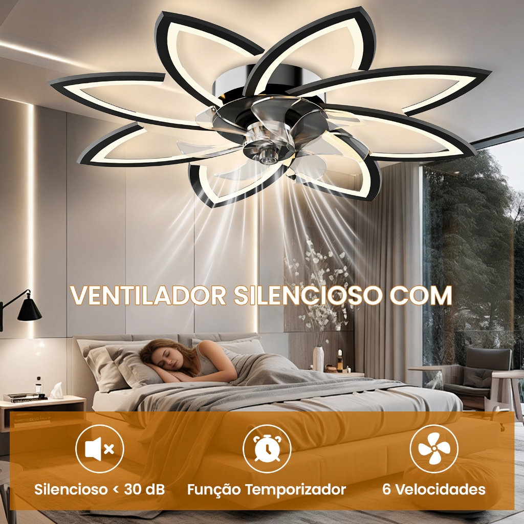 Ventilador de Teto 90W Com Luz Silencioso Controle Remoto Economica Intelar 7 Pás Luz Ajustável