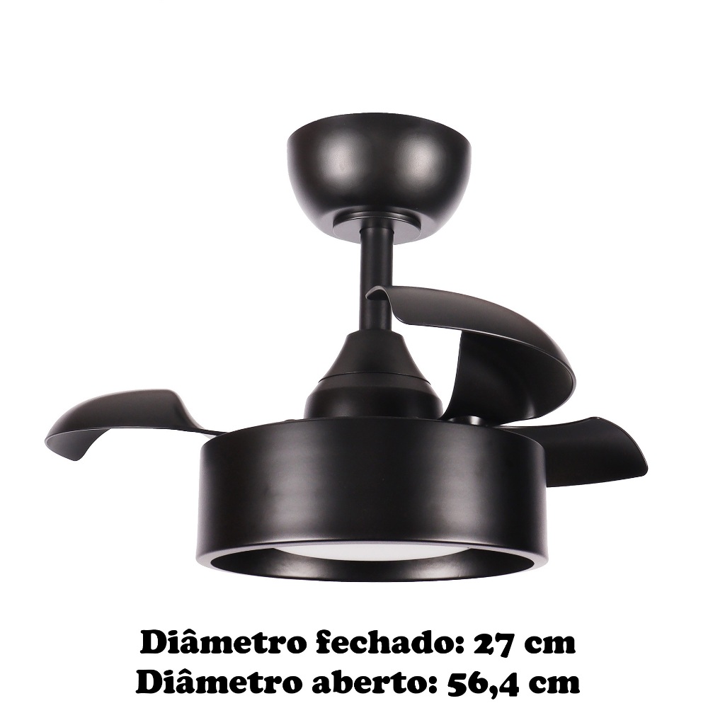 Ventilador De Teto Aliseu Retrátil Tulipa Preto - Bivolt - Com Controle Remoto