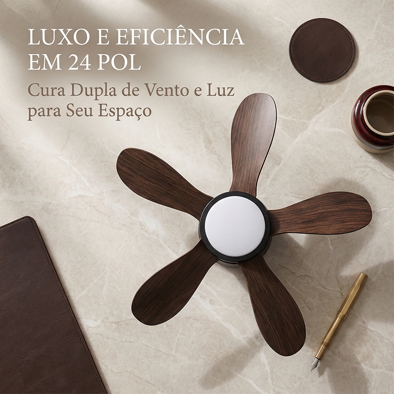 Ventilador de Teto com Lâmpada Bivolt 110V-220V 42/48 Polegadas Motor CC Reversível Silencioso LED 3 Cores Controle