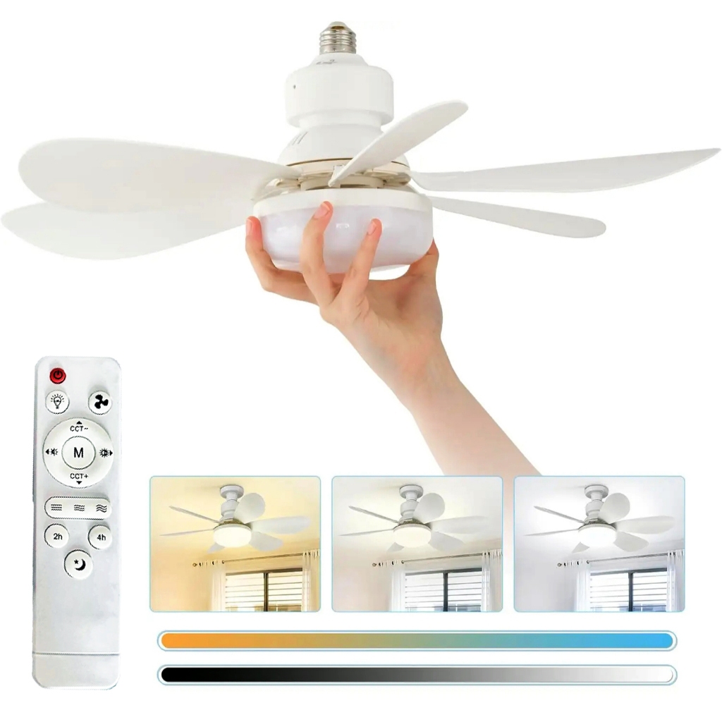 Ventilador de Teto Premium com Luz Integrada GIRA SOMENTE EM UMA DIREÇÃO – NÃO REVERSÍVEL. Transforme o ambiente com o Ventilador de Teto Premium com Luz Integrada. Prático e elegante, ele oferece conforto e iluminação de qualidade em um design moderno, perfeito para qualquer espaço. Com controle remoto e fácil instalação, você tem tudo o que precisa em um único produto. Especificações: Bocal: E27/B22 Voltagem: 85V/265V Temperatura de cor: 3000K/6500K Ângulo de irradiação: 180° Potência: 80W Velocidades: 3 Vida útil: 50.000 horas Medidas: Comprimento: 18,5 cm Largura: 52 cm Conteúdo: 1x Lâmpada LED 6x Hélices 1x Controle Remoto 1x Manual
