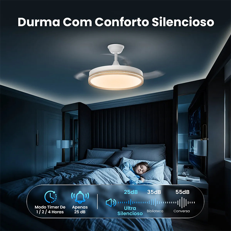 🏆 Compre com Segurança na Nossa Loja ✔ 📦 Estoque no Brasil – envio rápido ✔ 🚚 Postagem em até 24 horas úteis ✔ 🧾 Nota fiscal emitida ✔ 🛡️ Garantia de 1 ano ✔ 👨🔧 Suporte vitalício para instalação ✔ 💬 Atendimento rápido no chat ✔ 🛠️ Produto pronto para instalação ✔ 📖 Manual multilíngue: Português, Inglês e Espanhol Sua compra protegida do início ao fim! 🌬️ Ventilador de Teto Retrátil 42” com Luz LED – Moderno, Silencioso e Econômico ✔ Pás Retráteis que Abrem e Fecham Automaticamente ✔ Design Compacto e Elegante ✔ Motor DC Ultra Silencioso (25dB) ✔ 6 Velocidades + 3 Cores de Luz ✔ Bivolt 110V–240V ✔ Ideal para Quartos e Salas Modernas Tecnologia, conforto e sofisticação em um único produto. ✨ Pás Retráteis Automáticas – Beleza e Praticidade As pás se abrem automaticamente ao ligar e se recolhem ao desligar. Quando fechado, mantém um visual discreto e moderno no teto. Diâmetro aberto: 106 cm Ideal para quem quer economia de espaço sem abrir mão da ventilação potente. 🤫 Motor DC Ultra Silencioso – Apenas 25dB Perfeito para: • Quartos • Escritórios • Ambientes com bebê Funcionamento extremamente silencioso, proporcionando conforto sem ruídos. Vida útil superior a 15.000 horas. 🔄 Função Reversível – Conforto o Ano Todo Verão ☀ Vento refrescante para baixo Inverno ❄ Redistribuição uniforme do ar quente Mais eficiência em qualquer estação. 💡 Luz LED com 3 Temperaturas Ajustáveis 🌙 3000K – Luz quente aconchegante ☀ 4000K – Luz neutra ✨ 6500K – Luz branca fria Iluminação versátil para cada momento do dia. 🌪️ 6 Velocidades para Controle Total Escolha desde uma brisa suave até ventilação intensa. Ajuste facilmente pelo controle remoto incluso. 🛠️ Instalação Acompanha duas hastes (4” e 8”) Compatível com diferentes alturas de teto Recomendamos instalação por eletricista para maior segurança. 📦 Especificações Técnicas • Diâmetro aberto: 106 cm • Potência: 68W • 3 pás retráteis • Bivolt 110V–240V • Frequência: 60Hz • Nível de ruído: 25dB