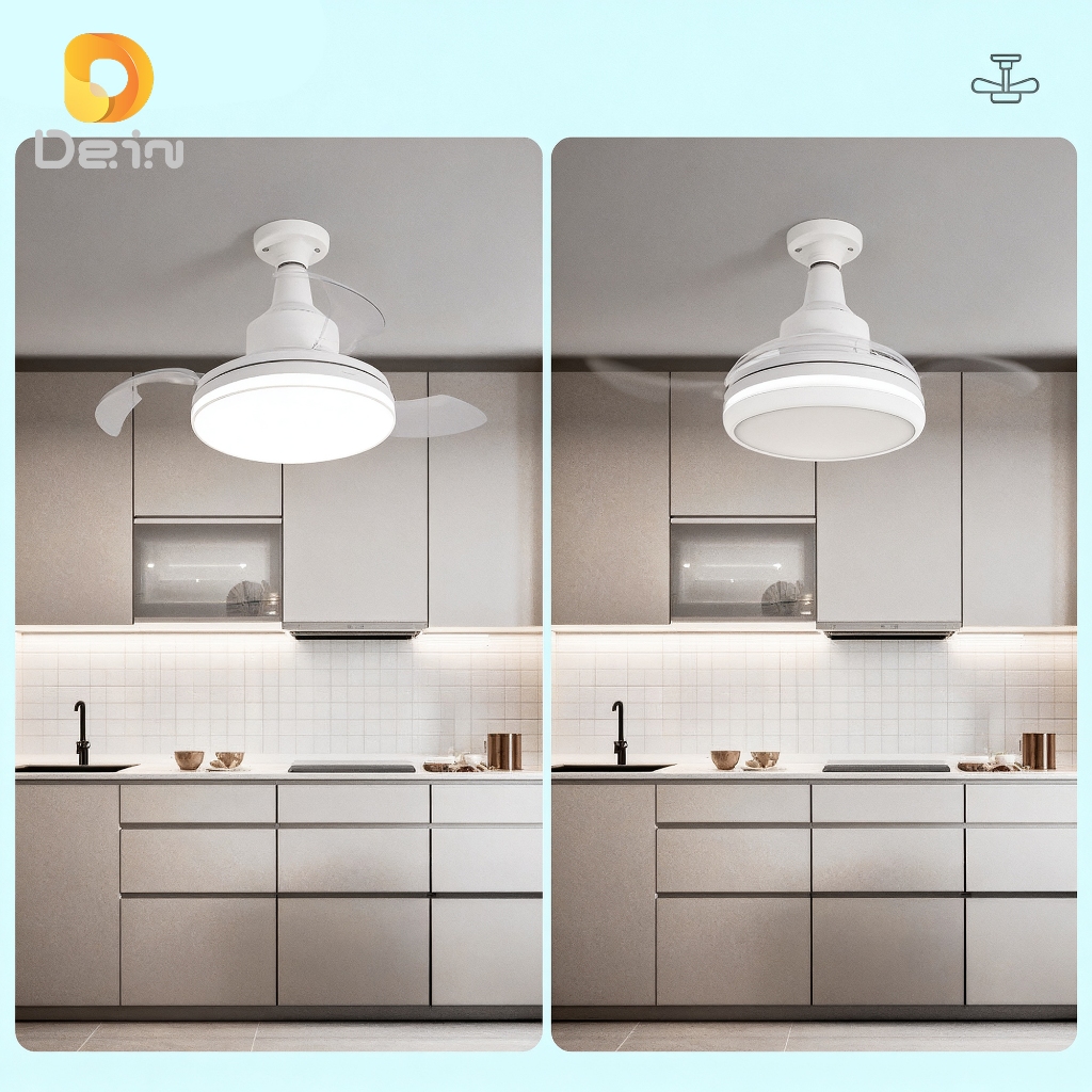 Ventilador de Teto LED Retrátil Padrão ou Crystal, Silencioso, 3 Velocidades e 3 Cores de Luz