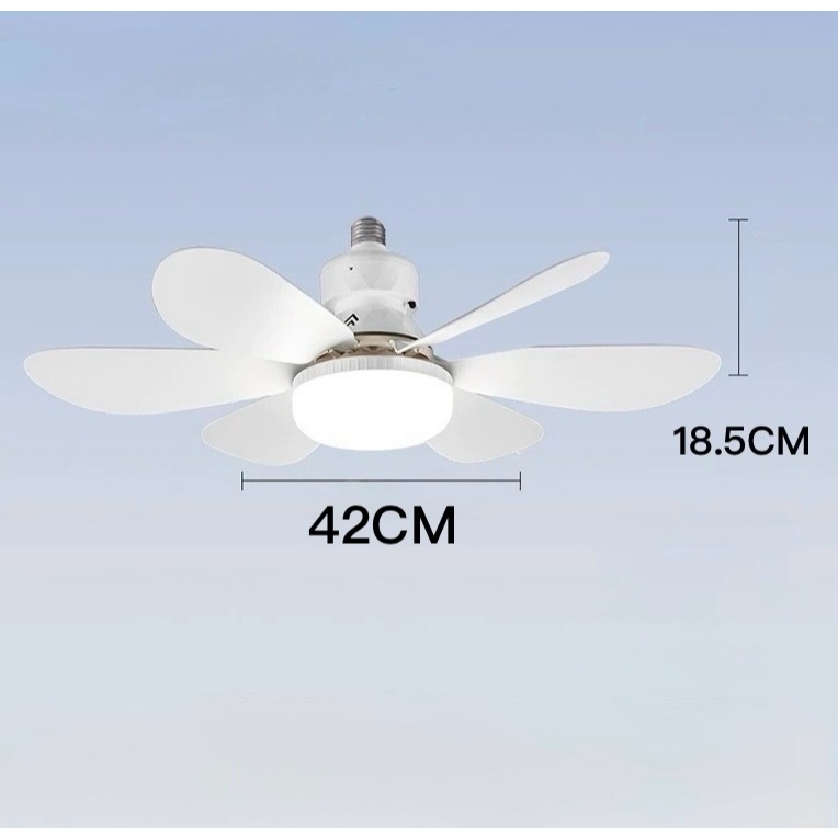 Ventilador De Teto Com Luz LED 52CM 6 Hélices Bivolt O ventilador teto com luz adota design 2 em 1, combinação de ventilador e luz LED . Temporizador 1h / 2h /4h, com um controle remoto fácil usar. 60W de potência luz, 3000K - 6500K regulável (branco frio, luz quente, luz natural) Luz LED, tem vento suave e baixo ruído, três níveis ajustáveis. Basta rosquear o suporte da lâmpada (E27) para substituir a lâmpada normal, regula bem a circulação interna e é fácil instalar. Especificações: Material: ABS + PC Medida:18.5 x 52 CM Tensão: BIVOLT Frequência: 50/60Hz Potência da lâmpada: 60W / 80W/ 100W Potência do ventilador: 60W/ 80W/ 100W Especificações do suporte da lâmpada: E27 Fonte de luz: luz branca Vida útil: 50000H