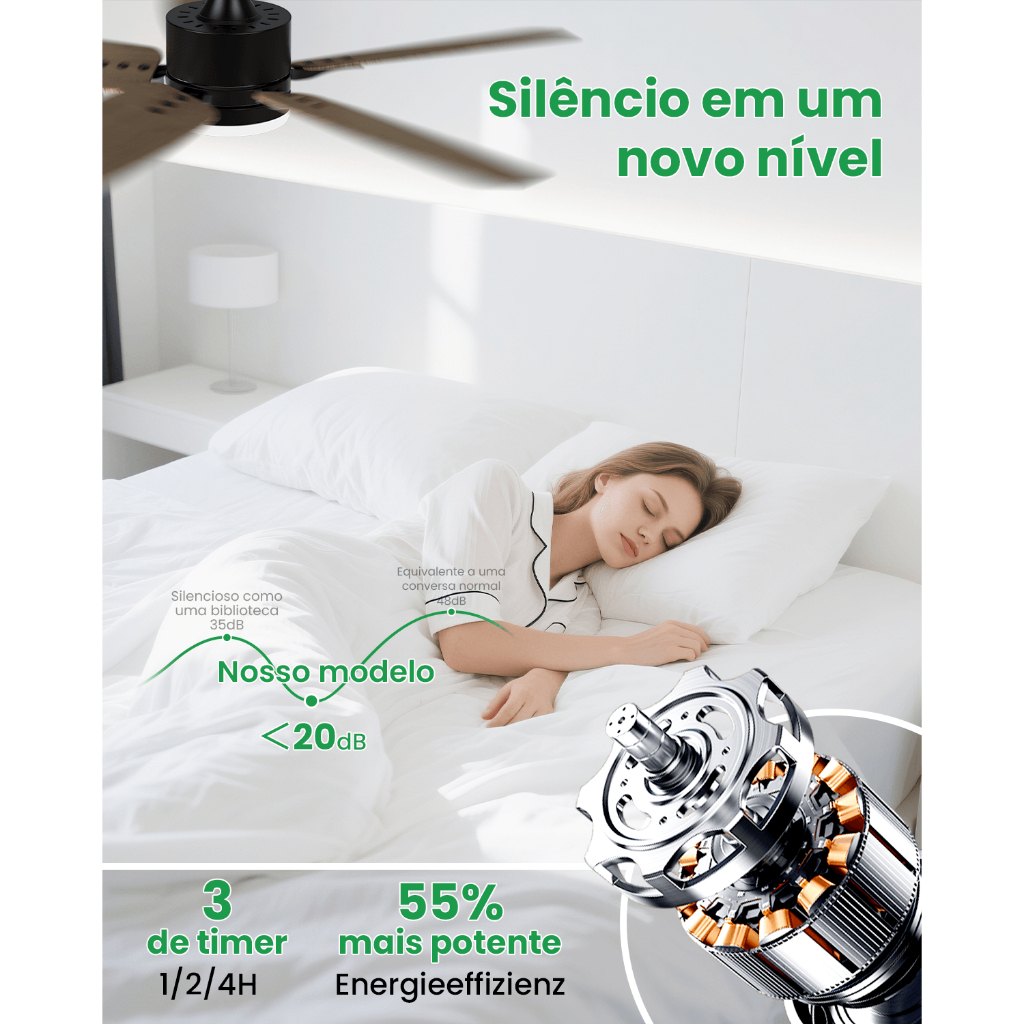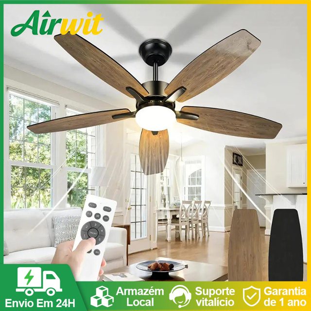 Ventilador De Teto Silencioso Inverter DC 5 Pás 42" Madeira 6 Velocidades LED 3 Cores Controle Remoto Moderno Casa