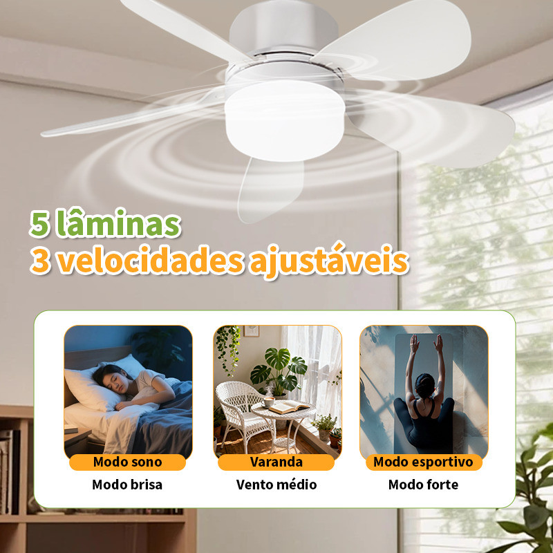 Transforme seu espaço com o ventilador de teto PRO 5 lâminas e design super moderno! Este ventilador foi desenvolvido para oferecer conforto, eficiência e estilo, com uma série de recursos incríveis! 😍 Características Principais: 🌬️ Super Silencioso – Funcionamento ultra silencioso para garantir noites de sono tranquilas e dias relaxantes. Você vai se apaixonar pelo silêncio! 💖 💡 Luz LED Integrada (10W) – Escolha entre 3 cores de luz para criar o ambiente perfeito: Branco Frio – Para momentos de foco e produtividade ✨ Branco Neutro – Para o equilíbrio perfeito no dia a dia 🌸 Luz Quente – Para momentos de relaxamento e aconchego 🌙 🔄 Função Timer – Defina o tempo para desligamento automático, perfeito para quem adora adormecer com o ventilador ligado! 😴 🌪️ 3 Velocidades (Lenta, Normal, Rápida) – Escolha a velocidade ideal para o seu conforto e aproveite o fluxo de ar perfeito o tempo todo. 🌀 🔧 Instalação Fácil – Equipado com E27 e compatível com tomadas comuns, o ventilador vem com um manual simples para facilitar a instalação. Pronto para usar em minutos! ⏱️ 🌀 420MM de Diâmetro – Ideal para pequenos ambientes e espaços aconchegantes. Compacto, mas super eficiente! 🏡 Especificações Técnicas: Lâminas: 5 Lâminas – Design otimizado para fluxo de ar eficaz 🌬️ Material: PC + ABS – Durabilidade e resistência para uso prolongado 🔒 Voltagem: 90-265V (Bivolt) 🌍 Potência do Motor: DC/12W – Baixo consumo de energia, mas com grande desempenho! ⚡ Luz LED: 10W com ajuste de cor (sem grau de brilho) Controle: Remoto com funções de ajuste e temporizador (não inclui bateria) 🕹️ Conteúdo da Embalagem: 1 Ventilador de Teto PRO 5 Lâminas com Luz LED 1 Controle Remoto (bateria não inclusa) 1 Manual de Instalação 1 Soquete E27 para lâmpada (pronto para usar!) 💡 Benefícios Adicionais: Alta Eficiência Energética – Economia de energia enquanto circula o ar no ambiente. 🌱 Design Moderno e Elegante – Perfeito para qualquer tipo de decoração, deixando seu ambiente mais charmoso e acolhedor! 🌸 Controle Remoto – Ajuste tudo de forma prática e rápida, sem sair do seu lugar! 📱 Não perca a chance de ter um ventilador que une beleza, eficiência e praticidade. 💫 Entre no clima de conforto e frescor agora mesmo! 🌬️💡