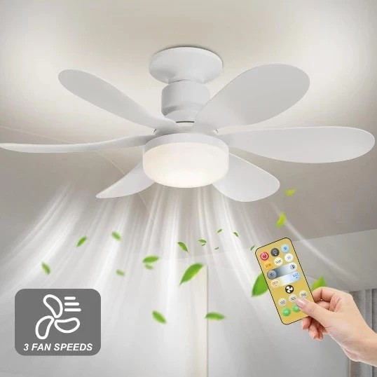 Ventilador De Teto Wind Light Silent Controle Remoto Lâmpada Led 60W Silenciosa 6 Folhas