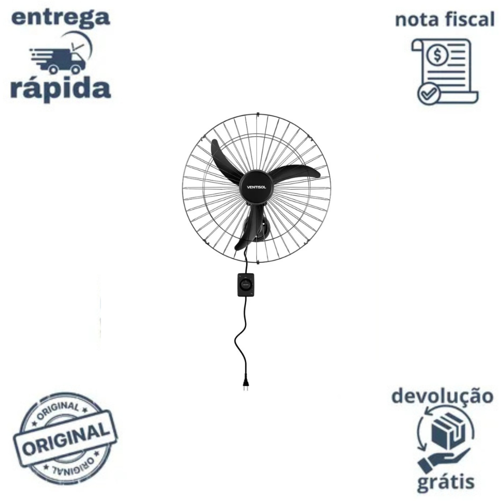 Ventilador Oscilante de Parede 60cm Bivolt Ventisol Silencioso Potente Ideal Ambientes Grandes