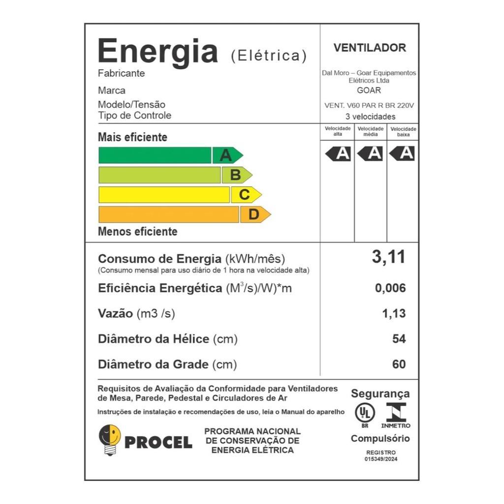 O Ventilador de Parede 60cm Branco Goar Bivolt é um produto de alta qualidade e durabilidade, ideal para uso em ambientes comerciais e residenciais. Com 18 meses de garantia, você pode ter a tranquilidade de contar com um produto confiável e resistente. Classificado com a nota máxima no INMETRO (A-A-A), esse ventilador possui um selo PROCEL de energia, o que garante que ele é eficiente e econômico. Com uma potência de 180W, ele é capaz de proporcionar uma alta vazão de ar, mantendo o ambiente fresco e agradável. Além disso, o Ventilador de Parede 60cm Branco Goar Bivolt é silencioso, permitindo que você desfrute de um ambiente tranquilo sem ruídos incômodos. Sua oscilação garante uma distribuição uniforme do ar, alcançando todos os cantos do ambiente. Com um design moderno e elegante, esse ventilador se adapta facilmente a qualquer estilo de decoração. Sua cor branca é versátil e combina com qualquer ambiente. Fácil de instalar, esse ventilador possui suporte de parede, permitindo que você o fixe de forma segura e prática. Além disso, ele é bivolt, o que significa que pode ser utilizado em qualquer voltagem, proporcionando maior comodidade. Invista em um produto de qualidade e eficiência com o Ventilador de Parede 60cm Branco Goar Bivolt. Garanta um ambiente fresco e agradável, com um produto que alia tecnologia, durabilidade e economia de energia.