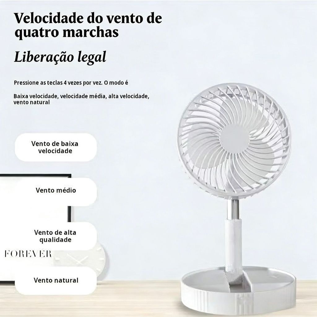 Ventilador Portátil Dobrável 4 Velocidades Recarregável USB Retrátil 180℃ Mesa Coluna Forte