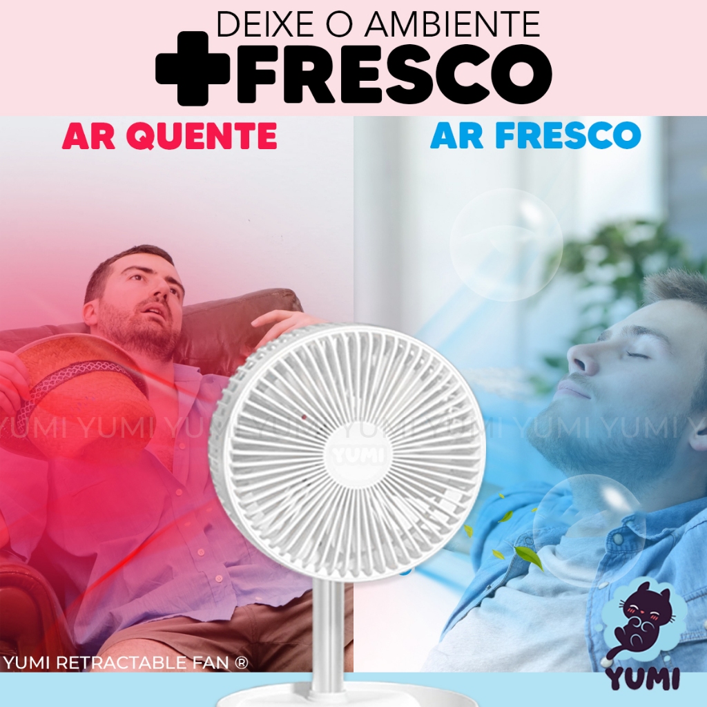 COMPRANDO HOJE ATÉ AS 12HRS (MEIO-DIA) ENVIAMOS NO MESMO DIA*. Galera chegou o mais novo lançamento de ventilador portátil com ajuste de altura e velocidades, bateria com grande duração. Leve o para qualquer lugar, pois ele é dobrável e fica bem compacto, cabendo em mochilas e malas. Ideal para se levar para casa de praias, acampamentos com barracas, escritório e na sua casa em qualquer cômodo. Também pode se utilizar sobre mesas pois ele é muito leve e tem o ajuste de altura e posição das hélices (pás). Você não vai encontrar em lugar nenhum um igual a este, é lançamento ! Características: - Ângulo de ajuste das pás; - Sua bateria de 7200mAh permite uma incrível duração de mais de 8 horas na velocidade 1*; - Quantidade de velocidade: 4 opções, sendo 1 intermitente; - Fácil transportar, pois ele é leve e dobrável; - Possui suporte para pequenos objetos; - Material da haste de liga de alumínio e plástico ABS; - Potencia de 1,3 a 4,8 W; - Baixo ruído de 30 a 40 db; - Tamanho Dobrado (206x206x1060mm) - Velocidade de trabalho do vento de 2,3 a 4 m/s; - Peso aproximadamente 1 Kg; - Comprimento aberto 1 m; Modo de Usar: - Desdobre as hélices com cuidado e verifique o sentido de dobra; - Para ajustar a altura desrosquei-e a base na parte inferior e puxe para cima como se fosse um pau de selfie para cima ajustando na altura desejada; - O aparelho conta com 4 velocidades, ao selecionar qual velocidade deseja, o led indicara a quantidade de bateria que possui; - Sua parte superior dobra 185 graus caso seja necessário ajusta a posição da ventilação; Itens inclusos: - 01 Ventilador Portátil; - 01 Cabo Carregador; - 01 Manual. Perguntas Frequentes: 01 - Como carregar o ventilador ? Ele possui bateria recarregável, com o cabo usb que o acompanha, pode estar usando ele ou outro que tenha, pode ser do seu celular. 02 - É bivolt ? Sim, o ventilador possui bateria bivolt. 03 - Possui regulagem de altura ? Sim, possui vários jeitos de se usar, desde no tamanho de 35cm a 1m. 04 - Posso carregar no carro ? Sim, porém será um pouco mais lento. 05 - Soft vento / vento refrescante / vento forte, três velocidades do vento para atender diferentes cenas da vida + modo intermitente. 06 - A grade frontal é removível e pode ser facilmente removida para limpeza com uma operação simples. Prazer, nós somos a YUMI! Atualmente, a YUMI atende todos os estados brasileiros e já fez mais de um milhão de vendas online surpreendendo nossos clientes com produtos criativos, divertidos, de alta qualidade e originalidade. Criando uma experiência única, pela grande variedade de produtos acessíveis para todas as classes. Para garantir sua melhor experiência, recomendamos ler completamente a oferta e as descrições do produto pretendido, além das políticas de envio, garantia, troca, cancelamento e outras, e caso tenha alguma dúvida utilize o campo de perguntas para que nossa equipe possa lhe auxiliar. Sobre o Envio: -*Pedidos com pagamento aprovado até às 12 horas (meio-dia) serão enviados no mesmo dia, exceto aos finais de semana, feriados e emendas de feriados. -Pedidos com o pagamento for aprovado após as 12 horas (meio-dia), finais de semana, feriados e emendas de feriados serão enviados em até 1 dia útil. -IMPORTANTE: (Sempre confira com atenção seu endereço e CEP). -* O prazo de entrega é estimado, podendo variar em caso de acontecimentos imprevisíveis, bem como Greve dos Correios.