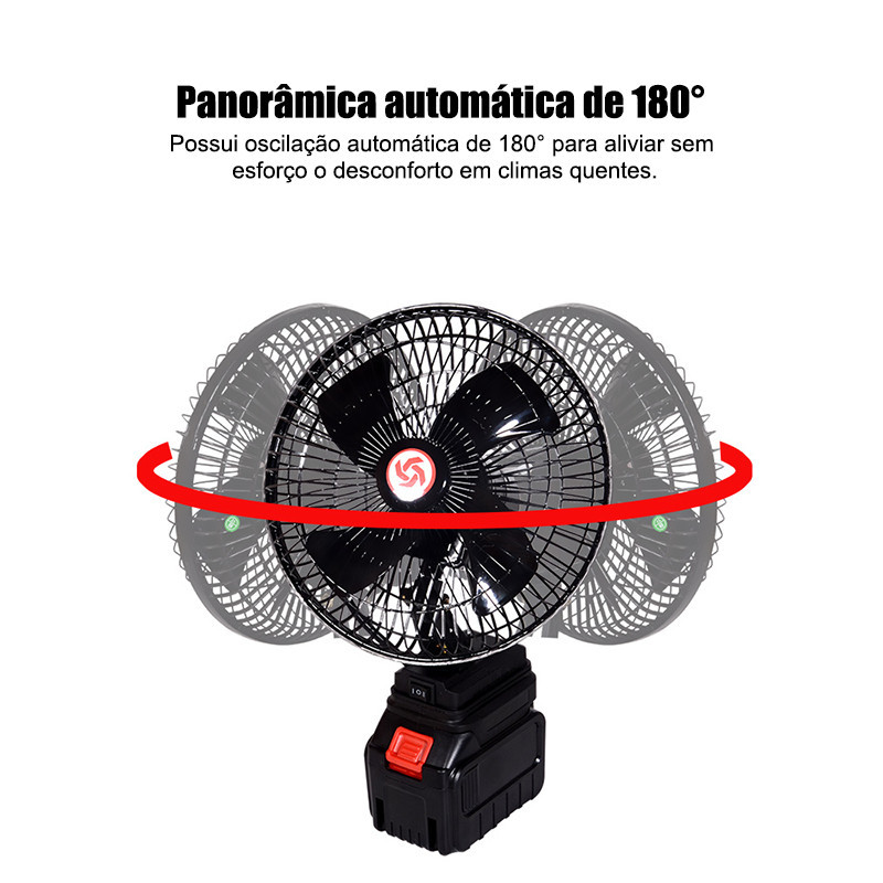 Ventilador Sem Fio 8" com 2 Baterias 48V e Carregador – Autonomia de até 10 horas Portátil, potente e pronto para uso em qualquer lugar! Destaques do Produto: Acompanha 2 baterias 48V recarregáveis Inclui carregador compatível Autonomia de até 10 horas com as 2 baterias Compacto, leve e fácil de transportar Ideal para uso interno e externo: casa, oficina, camping, viagens e muito mais Potência e Eficiência: Motor brushless (sem escova): mais durável e silencioso Alta rotação: até 3500 RPM Baixo nível de ruído: apenas 5 a 10 decibéis 5 pás resistentes garantem ventilação eficiente mesmo em ambientes amplos Onde Usar: Oficinas, marcenarias e canteiros de obras Viagens, acampamentos, praia e piscina Quartos, cozinhas, salas, escritórios e locais com pouca ventilação Dentro do carro ou em áreas sem energia elétrica Especificações Técnicas: Especificação Detalhe Tensão das baterias 48V Autonomia Até 10 horas (com as 2 baterias) Diâmetro das pás 8 polegadas (20 cm) Tipo de motor Brushless (sem escova) Velocidade 3500 RPM Material ABS resistente Nível de ruído 5 ~ 10 dB Número de pás 5 Tipo de alimentação 2 baterias 48V ou adaptador DC 5V 2A (incluso carregador) Ajuste de velocidade Não Rotação ajustável Não Conteúdo da Embalagem: 1 Ventilador sem fio 8" 2 Baterias 48V recarregáveis 1 Carregador compatível